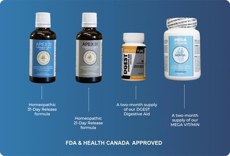 Say goodbye to overwhelming weight loss journeys! APEX31’s revolutionary program combines homeopathic expertise with targeted formulas to: